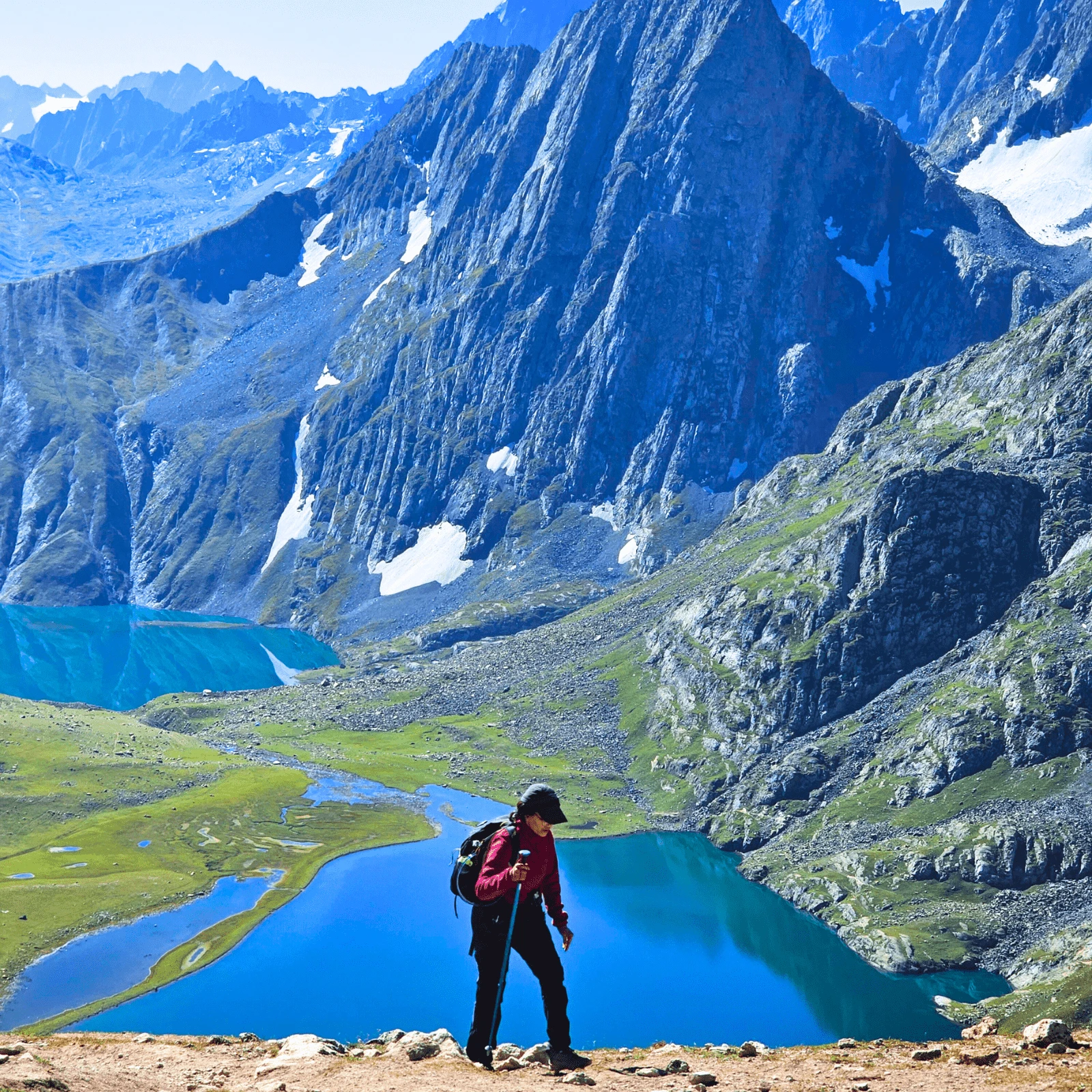 The trail passes through a series of stunning turquoise and emerald lakes, including Vishansar, Krishansar, Gadsar, and Gangbal, each surrounded by towering Himalayan peaks. Trekkers also experience picturesque hamlets, rolling meadows, and panoramic vistas of snow-capped mountains, all while being immersed in the untouched beauty and tranquility of the region.