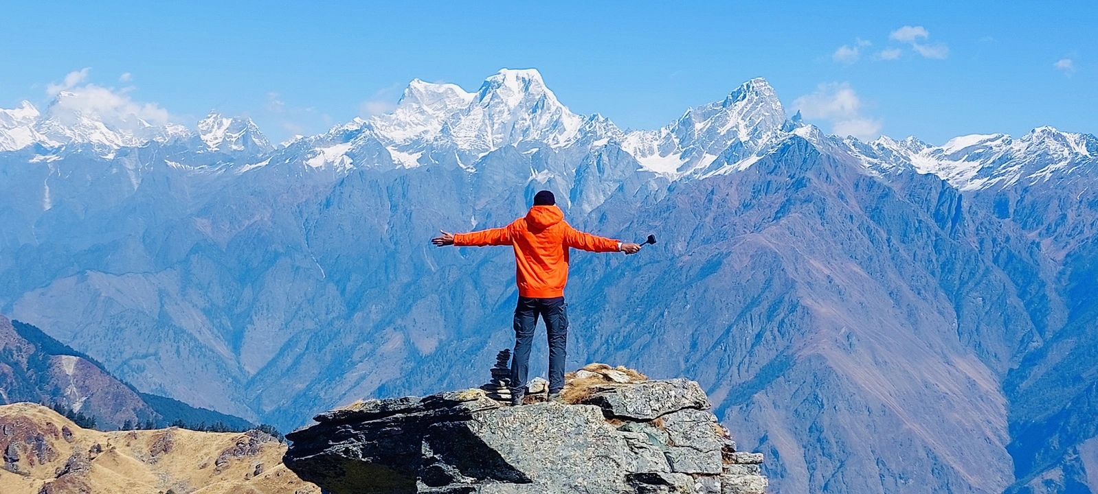 One of the most memorable highlights of the Kuari Pass Trek is standing at the high pass itself. The vantage point gives trekkers a breathtaking 180°–270° panorama of some of the most iconic Himalayan ranges. Watching the sun rise or set over Nanda Devi and the surrounding peaks is an awe-inspiring moment that leaves trekkers with lifelong memories.