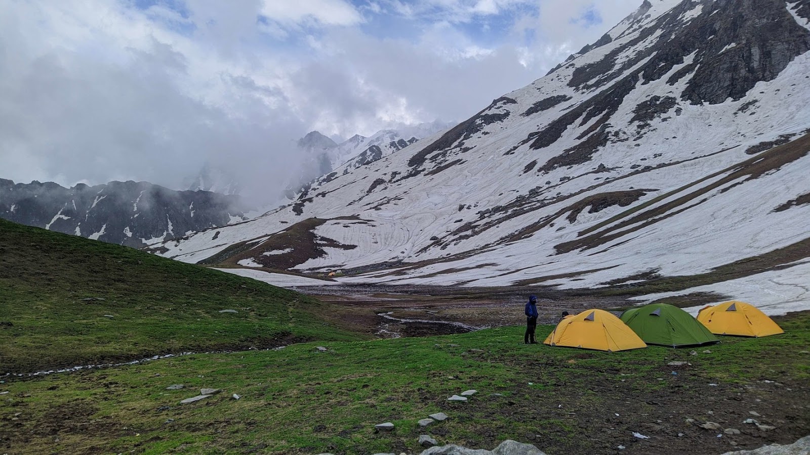 The trek starts from Jobra near Manali and ends at Kasol, making it a point-to-point trek across the Parvati Valley.