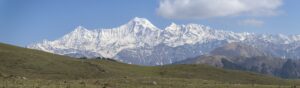A Bugyal (pronounced boog-yaal) refers to high-altitude meadows found in the Himalayas. These grassy alpine pastures typically lie above the treeline, between 10,500 ft and 13,000 ft, and offer wide open landscapes with stunning views of surrounding peaks and valleys.